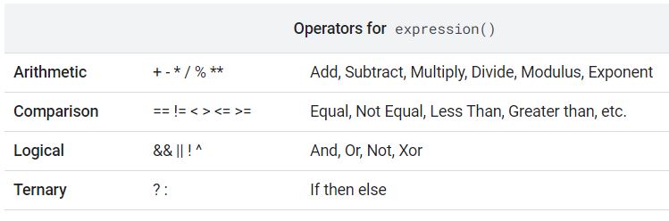 Onderstaande tabel geeft de binnen de expressies gehanteerde operators weer (bron: Earth Engine guide)